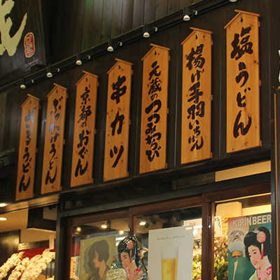 錦満宮から湧き出す京の名水「錦の水」が井戸から流れる、京情緒と人情味溢れる雰囲気の店内では、地元の方、お勤め帰りの方、観光の方々等、幅広いお客様で連日賑わいをみせます。